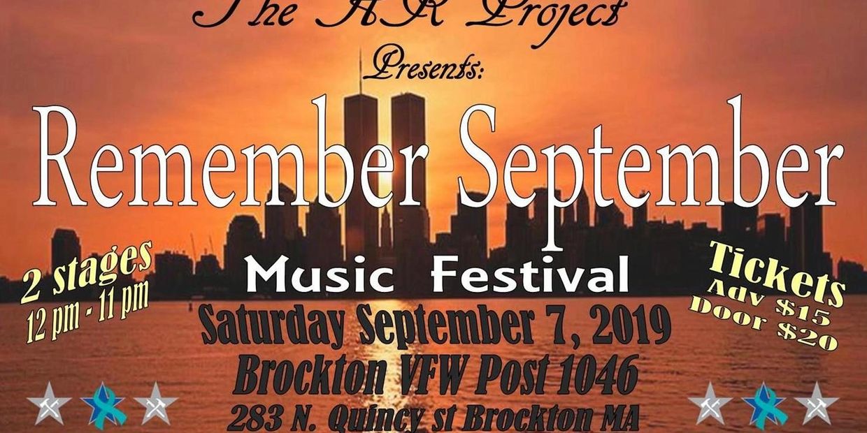 For the fourth year The AR Project is proud to bring you Remember September Music Festival, an all day, all ages Music Festival featuring original music from local bands and acoustic acts on two separate stages. Join us at 6:00 pm for our honor the fallen ceremony. There will be food, drink, music, and so much more. Each year this festival reminds us all of the effects of 9/11 across the world. In the past 18 years many have become used to the changes in our world and don't remember what it was like before the vicious attack on our freedom. Please join us as we get together to celebrate our continued freedom and honor our Fallen Heroes.